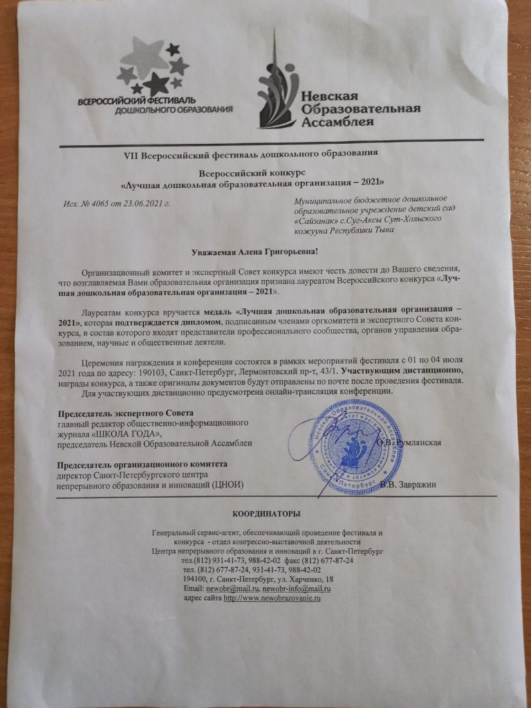 Главные новости Наш детский сад признан лауреатом Всероссийского конкурса «Лучшая дошкольная образовательная организация 2021» 25.10.2021 /