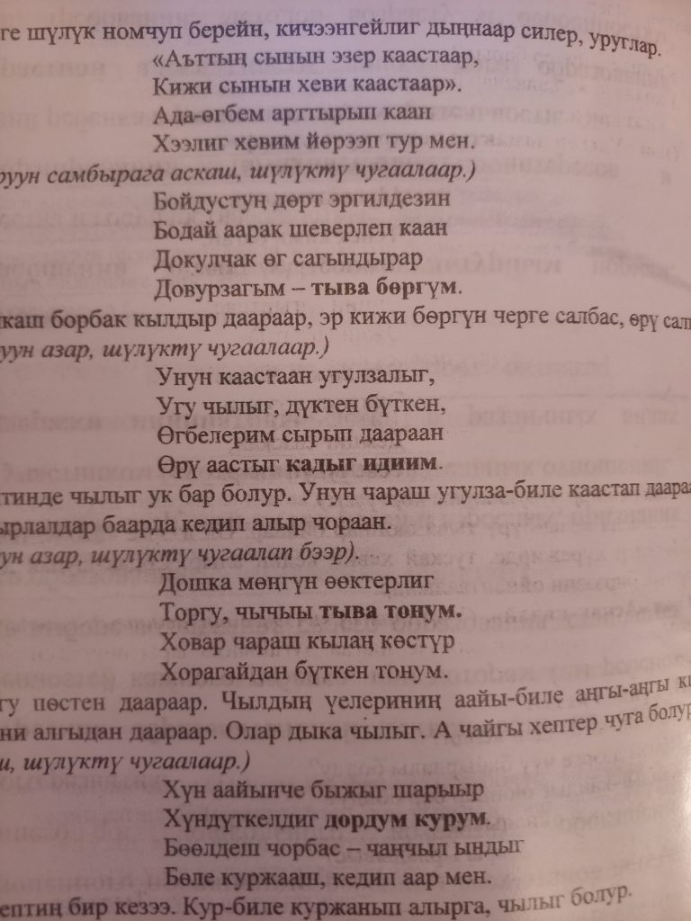 Экии, экии алдын хунун. Экии ак-кок дээрим. Экии, эш. Экии Эш. Экии бистин найыралдыг болуувус.